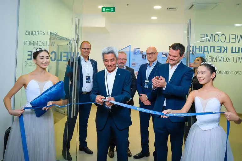 В торжественной церемонии перерезания ленточки приняли участие вице-президент Konica Minolta Business Solutions Europe Ёшинори Койде и генеральный директор Konica Minolta Kazakhstan Павел Шалагинов